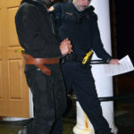- Tanveer Hussain, left, is led out of the St. Armand Town Hall on March 1 by Saranac Lake village Patrolman Luke Cromp. Hussain, visiting from India to race in the prior weekend’s World Snowshoe Championships, was arraigned in town court on charges of sexual abuse and endangering the welfare of a child. (Enterprise photo — Chris Knight)