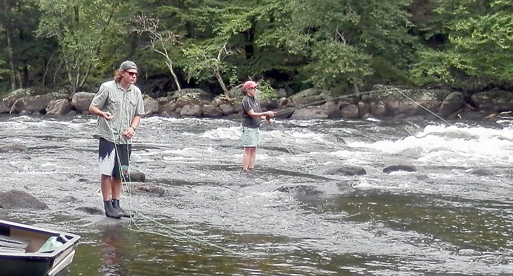 Flyrodders work their craft on a remote section of the Raquette River, where the tumbling waters provide plenty of oxygen, and plenty of fish. (Photo — Joe Hackett)