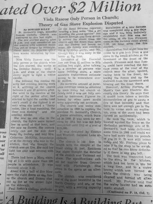 It is amazing how vivid the scenes and events still are today, even 50 years after covering the fire that burned down St. Bernard’s Church in Saranac Lake.