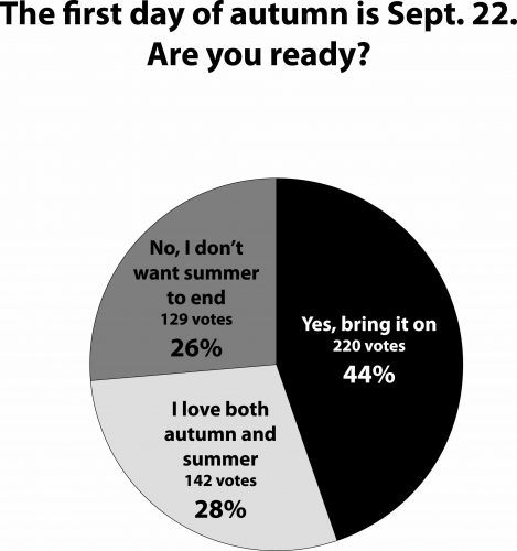 This week’s Straw Poll: The first day of autumn is Sept. 22. Are you ready? — This poll is not scientific, and its results represent only the opinions of Internet users who have chosen to participate.