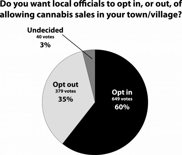 This week’s Straw Poll: Do you want local officials to opt in, or out, of allowing cannabis sales in your town/village? - This poll is not scientific, and its results represent only the opinions of internet users who have chosen to participate.