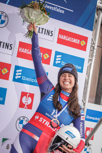 WINTERBERG, Germany — Emily Sweeney of Lake Placid returned to the podium at the FIL (International Luge Federation) World Cup competition in Winterberg, Germany, taking home the bronze medal in the women’s singles race.
