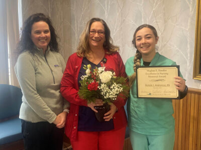 The award was established by Dr. Richard and Leslie Handler in memory of their daughter, Meghan. It is given annually to a registered nurse employed by Adirondack Health with one to three years of professional experience. The recipient must show a commitment to improving and expanding their knowledge base, excellent technical skills, and efficiency, as well as demonstrate compassion and rapport with patients’ families, significant others and colleagues.
