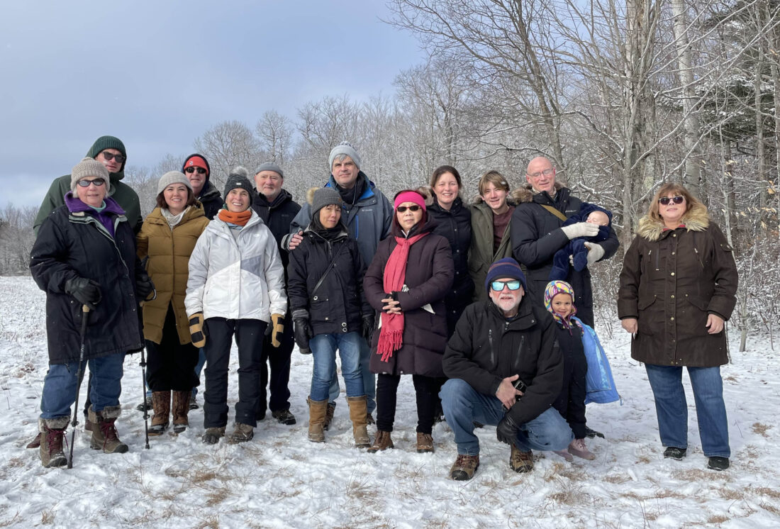 First Day Hike participants pose for a photo at the edge of fields above the historic site. (Provided photo — Brendan Mills)