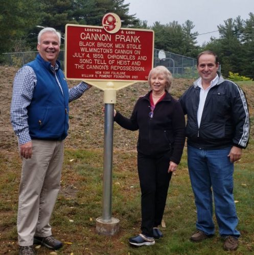 The town hosted an event to celebrate the new roadside marker with stories of the Cannon Prank of July 4th, 1850, a reading of the “Wilmington Chronicles,” music and refreshments.
