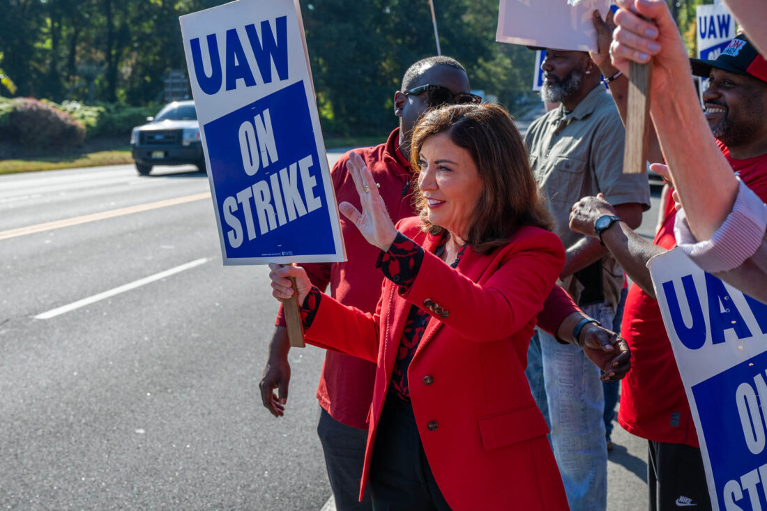 Hochul joins striking auto workers’ picket line