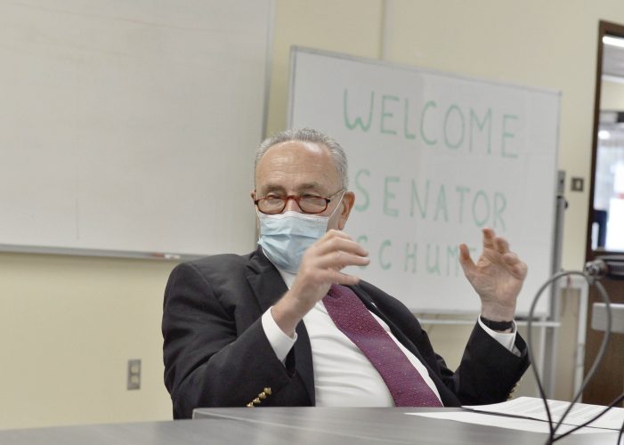 GLENS FALLS — U.S. Sen. Charles Schumer (D-N.Y.) made a stop at the Charles R. Wood Theater on Friday to tout the recently passed American Rescue Plan and laid out ways the $1.9 trillion legislation will help those struggling in the region.