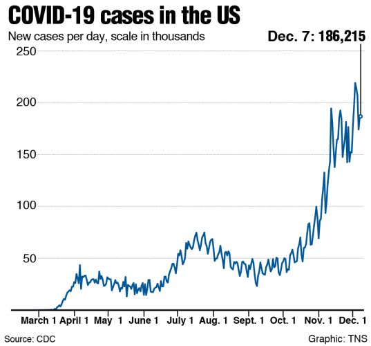 Deaths from COVID-19 in the U.S. have soared to more than 2,200 a day on average, matching the frightening peak reached last April, and cases per day have eclipsed 200,000 on average for the first time on record, with the crisis all but certain to get worse because of the fallout from ...