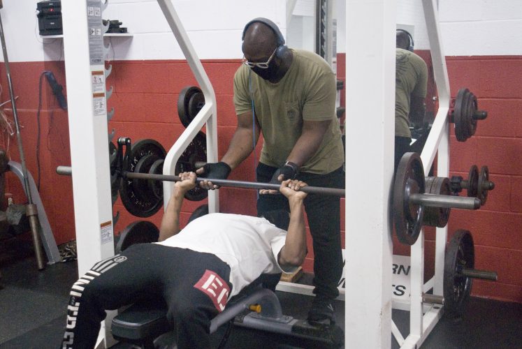 CORTLAND — Mike Smiley laid under the bar of the Smith machine Tuesday at the Cortland YMCA and placed his hands on the bar. Willie Brigman stood behind him keeping his hands slightly under the bar, spotting Smiley.