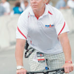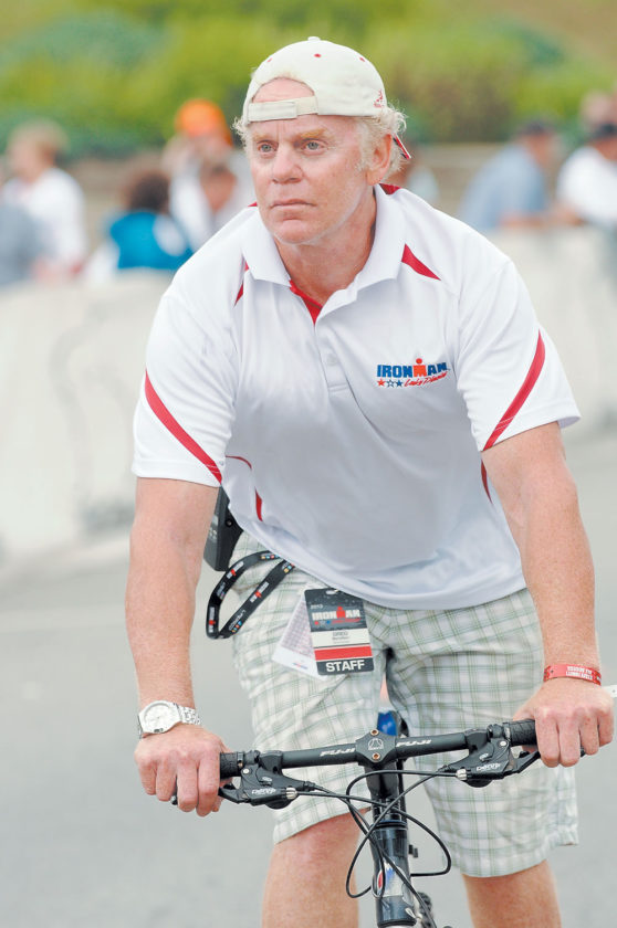 Greg Borzilleri rides a bike while working the Ironman Lake Placid. (Enterprise file photo — Lou Reuter)