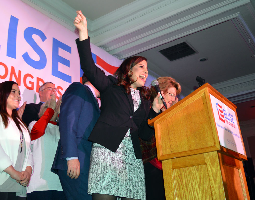 GLENS FALLS — U.S. Rep. Elise Stefanik relived the same victory scene from 2014, to the tune of Journey’s “Don’t Stop Believing” amid the grand chandeliers and massive American flags at the Queensbury Hotel.