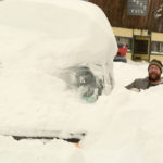 About 100 yards away, Lake Placid newbie Mike Martineau dug his car out from the snow. He said he’d been at it for 25 minutes and estimated it would take him another hour to get all of the snow cleared. He added that it wasn’t the first time he removed snow from his car, as 7 inches of fresh snow had cocooned his vehicle since 7 p.m. Tuesday night.
