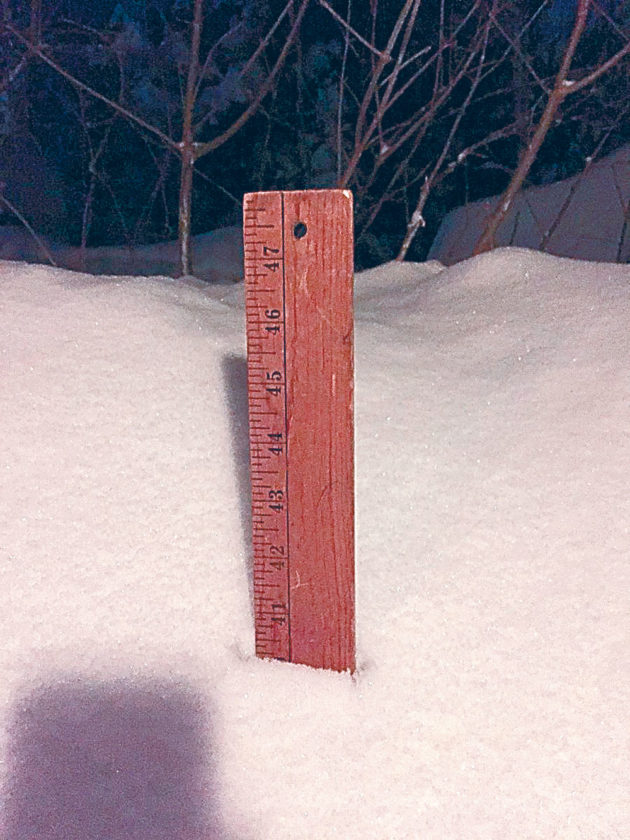 - The Regional Office of Sustainable Tourism reported more than 40 inches of snow this morning in Lake Placid. (Photo provided — ROOST)