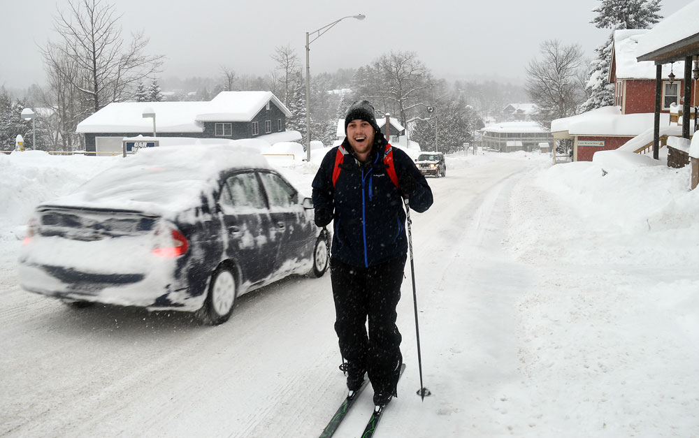 Over on Sentinel Road, Lake Placid, Alex Hudson cross-country skied on the street where numerous vehicles became stuck in the snow during the height of the storm early Tuesday evening. He was heading to work at The Cottage Cafe.