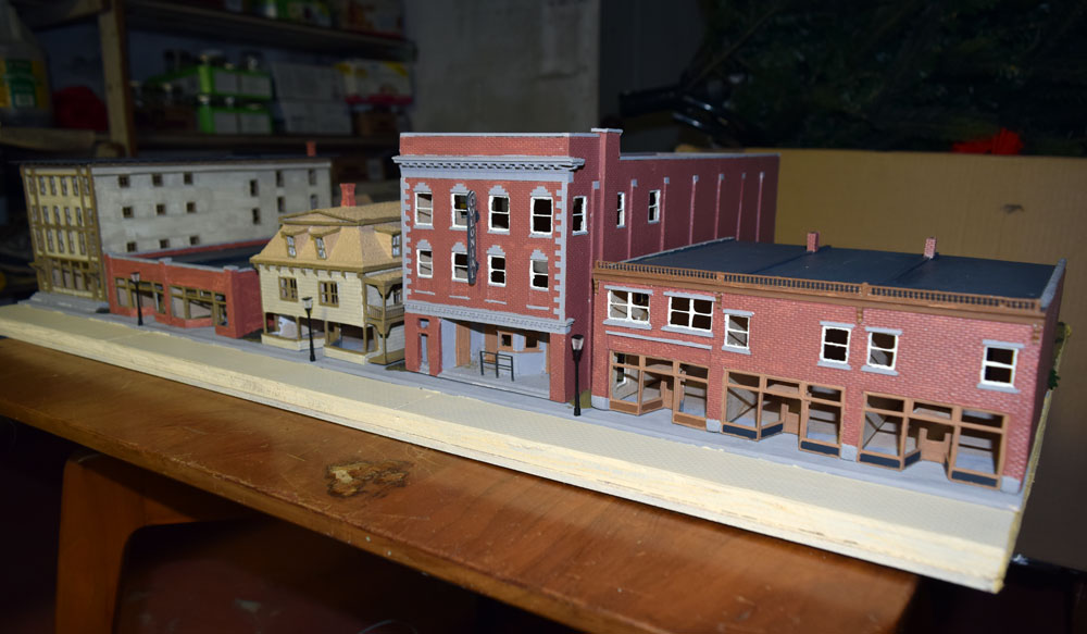- John Wheeler has re-created a row of old Broadway buildings in model form that will be displayed at his “Remember When?” exhibit at the Saranac Laboratory Museum. (Enterprise photo— Chris Knight)