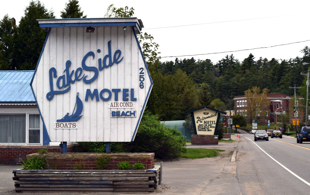 - Signs for the Lake Side Motel and Adirondack Motel are seen in May on Lake Flower Avenue on Saranac Lake. A third motel in this row, the Lake Flower Inn, is just past the Adirondack Motel. Developers plan to buy the three motels and demolish them to make room for the Lake Flower Resort. (Enterprise photo — Chris Knight)