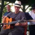 - Alex Marklund plays guitar with Crackin’ Foxy in August 2016 at Saranac Lake’s Berkeley Green. He used to be primarily a bluegrass player but learned to play in the Gypsy jazz style for this local band. (Enterprise photo — Chris Knight)