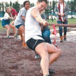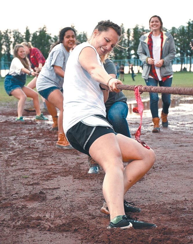 Dozens of people teamed up for the tug of war, which saw four women’s and four men’s teams battle it out in the soaked clay of the town softball diamond. The Rope Burn women’s team won for the sixth straight year, but lost to the men’s Team No Name in a final battle royal.