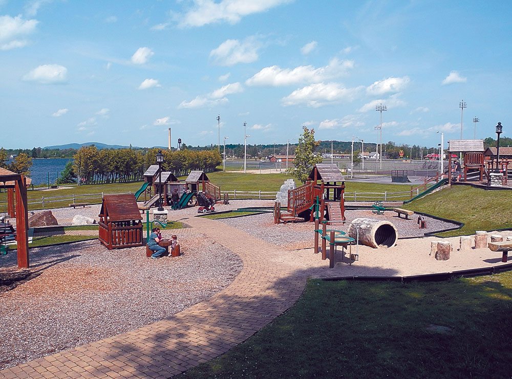 Just beyond the Little Loggers playground is the diamond-shaped grassy site of a proposed Little League baseball field, with its home base between the skateboard park and the trees lining the shore. (Enterprise photo — Aaron Cerbone)
