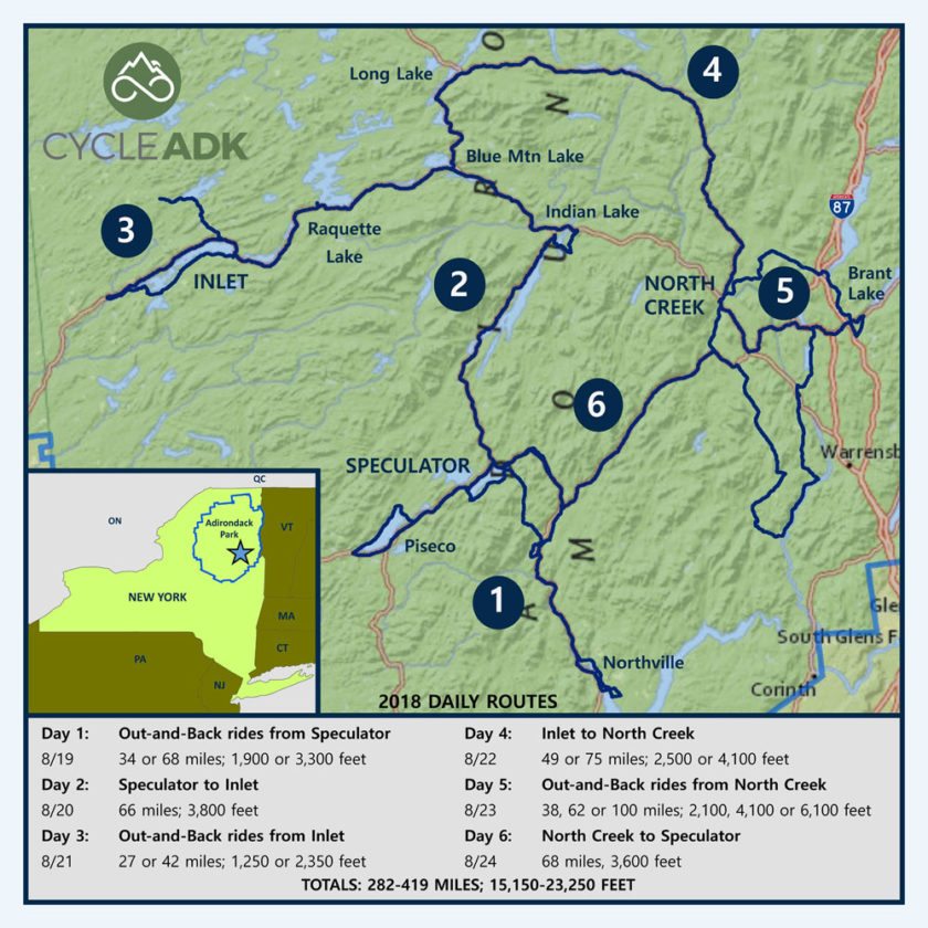 - Route map for next Cycle Adirondacks, Aug. 18 to 24, 2018