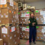 Randy Cross, owner of Carpe Insectae LLC, in front of a shipment labeled for Canada. (Enterprise photo — Glynis Hart)