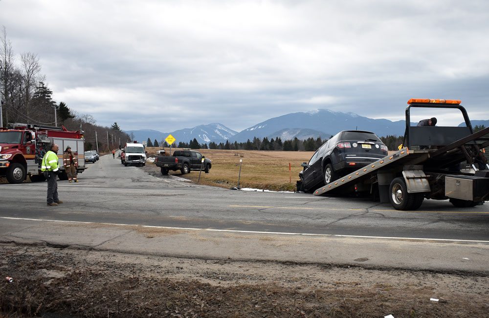 When the Enterprise arrived on the scene, a towing service was pulling the SUV out of the ditch at the corner of the two roads. The front driver’s side of the SUV was damaged, and the Adirondack Loj Road sign was bent.