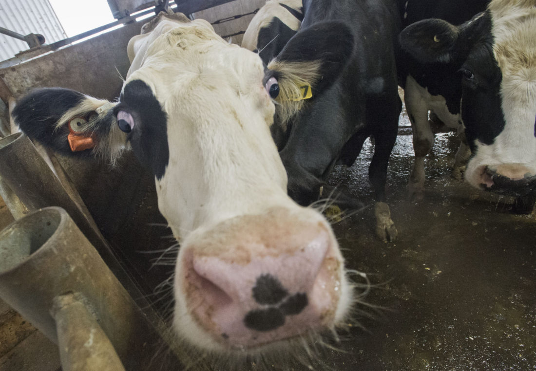 Orange ear tags on cows are health monitors that let farmers know if a cow is sick or going into heat. Despite modern technology, the dairy industry is scrambling to find ways to survive. (Photo — Christopher Lenney, Watertown Daily Times)