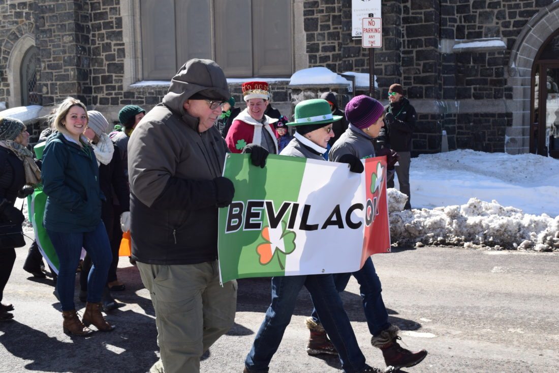 In keeping with the slogan, “Everyone is Irish on St. Patrick’s Day,” families were encouraged to march as clans whether they were Irish or not. In the spirit of the parade, a half dozen or more families adopted Irish identity for the march, and everyone wore green in one form or another.