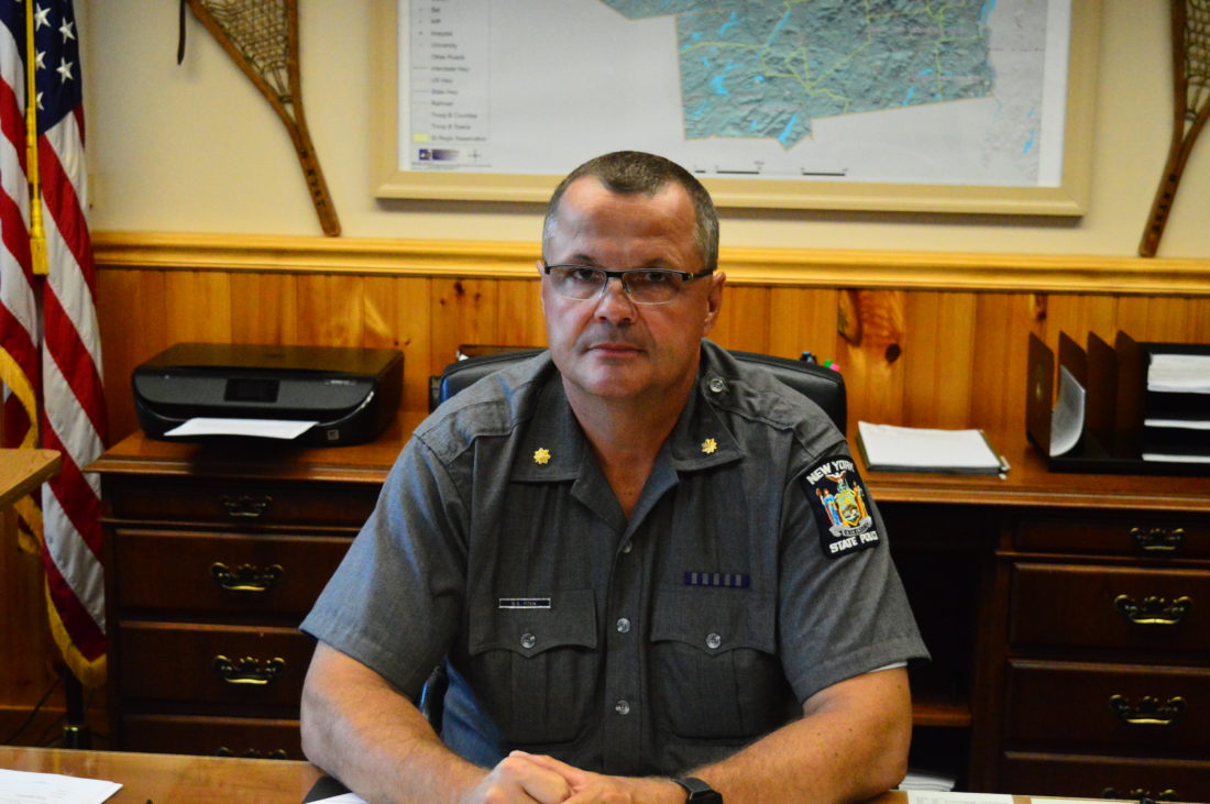 RAY BROOK — The new state police Troop B commander has spent two weeks on the job now and is learning the ins and outs of his new position and his New Jersey-sized troop.