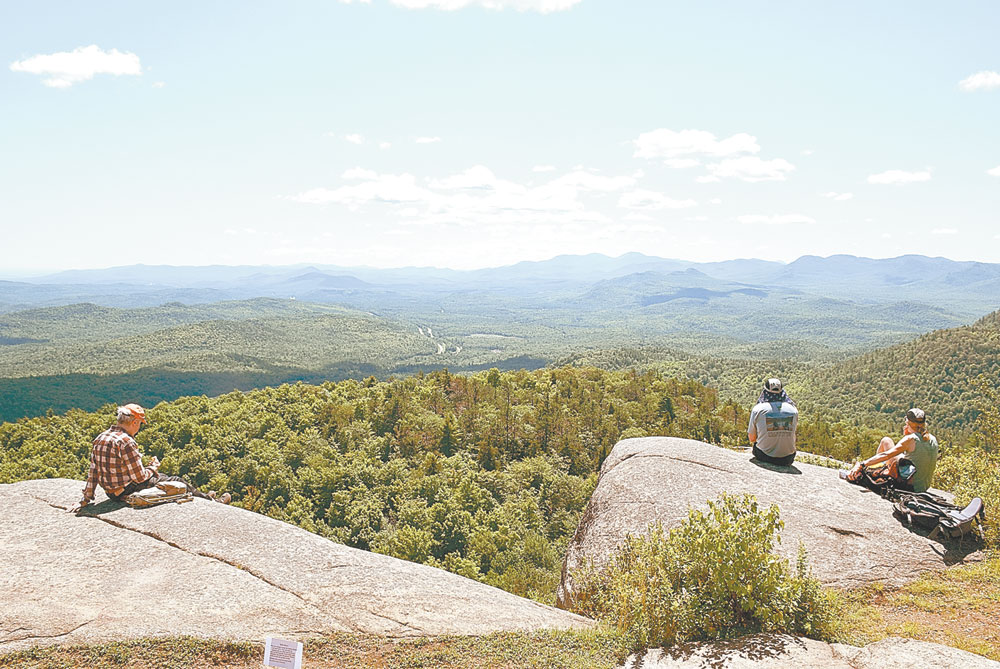 People take in the view from the summit of Poke-O-Moonshine Mountain near Keeseville, one of four hikes in the new hiking challenge geared toward kids. (Enterprise photo — Justin A. Levine)