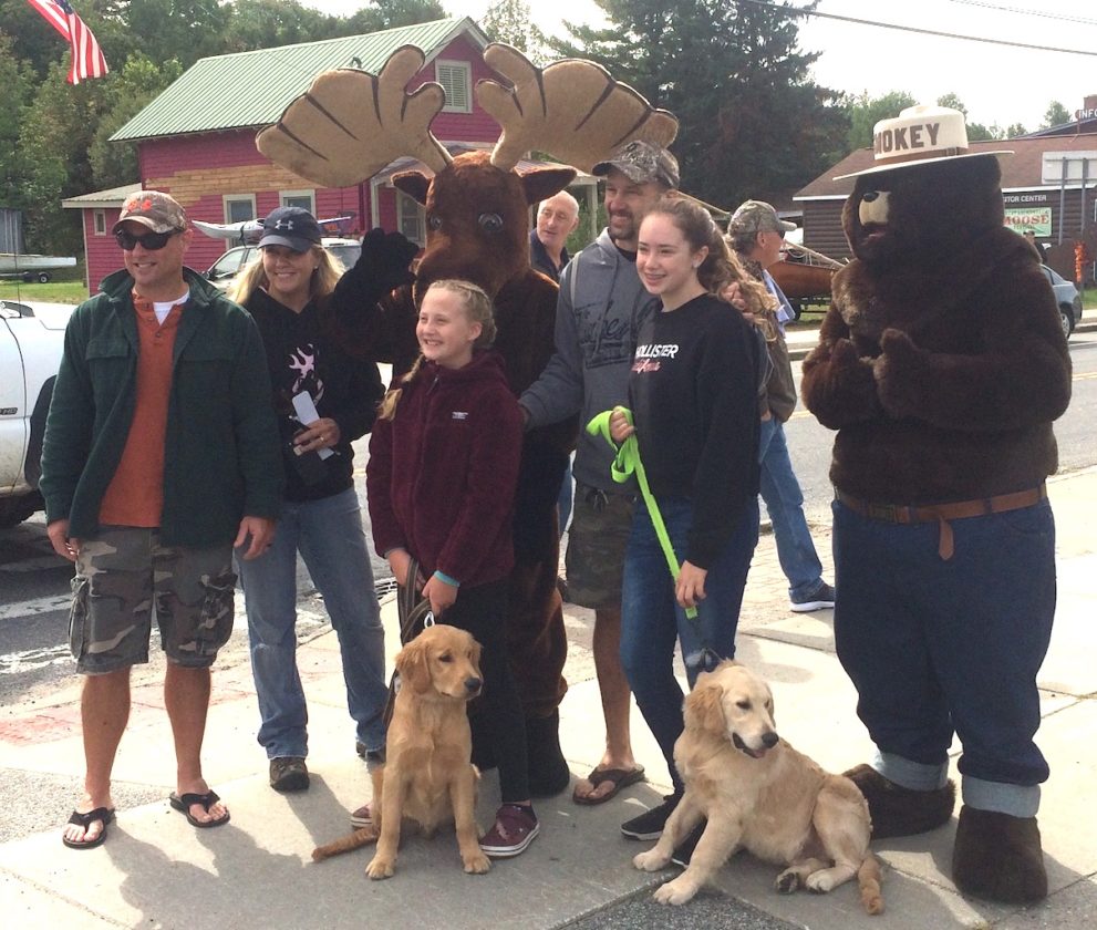 - The Bard and Coogan Families from Schenectady and Stillwater enjoy photo op with Bruce the Moose and Smokey Bear during The Great Adirondack Moose Festival (Photo for the Enterprise — Bill Quinlivan)