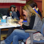 - Jordanna Mallach tallies votes alongside her daughter and other supporters Tuesday night in the Voters for Change office in downtown Saranac Lake. (Enterprise photo — Jesse Adcock)