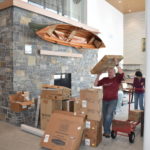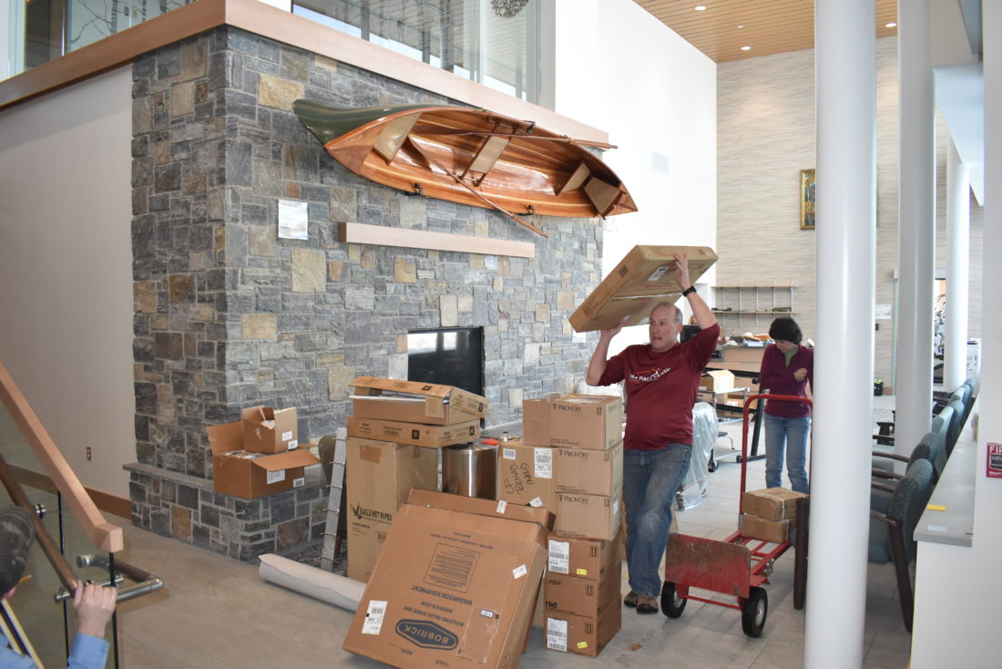 Adirondack Health Director of Rehabilitation and Sports Medicine Rick Preston moves boxes at the soon-to-be-open Lake Placid Health and Medical Fitness Center. The medical center will have a rolling start, but is expected to start treating physical rehabilitation patients Wednesday. (Enterprise photo — Griffin Kelly)