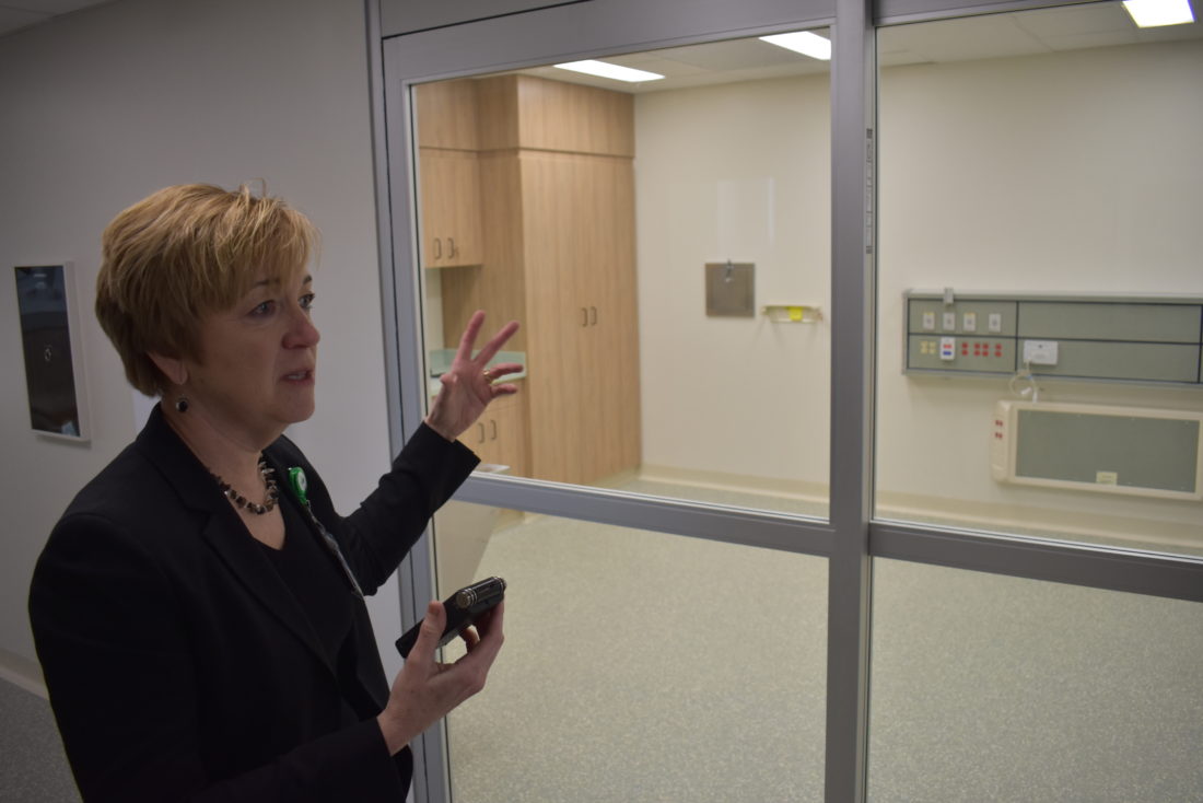 - Adirondack Health CEO Sylvia Getman explains the trauma center at the new Lake Placid Health and Medical Fitness Center Monday during a tour. (Enterprise staff — Griffin Kelly)