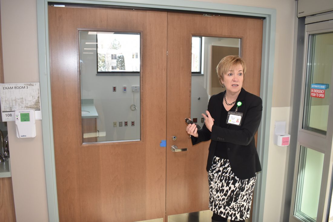 Adirondack Health CEO Sylvia Getman gives a tour of the emergency department at the new Lake Placid Health and Medical Fitness Center on Jan. 14. (Enterprise photo — Griffin Kelly)