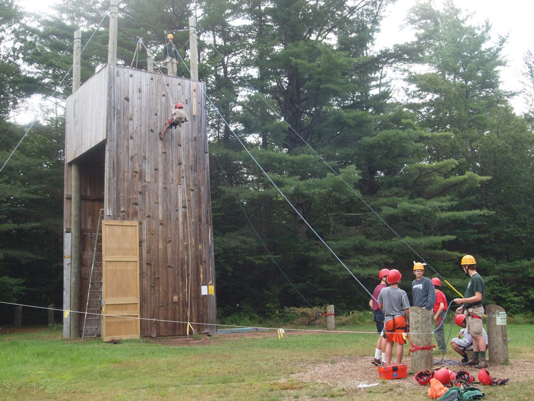 - A Boy Scout descends a rappelling wall at Massawepie Scout Camps in the town of Piercefield in August 2017. (Enterprise photo — Dana Hatton)