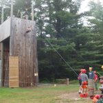 A Boy Scout descends a rappelling wall at Massawepie Scout Camps in the town of Piercefield in August 2017. (Enterprise photo — Dana Hatton)