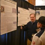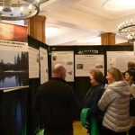 Folks observe the Irish Influence in the Adirondacks exhibit on display at the Hotel Saranac Thursday night.