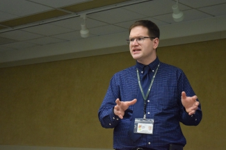Carl Bowen, director of Food and Nutritional Services at Adirondack Medical Center, talks Thursday during the Library Lunch Series at the Saranac Lake Free Library. (Enterprise photo — Jesse Adcock)