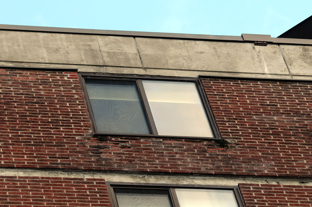 The nine-story apartment building’s brick facade is chipped, cracked and warped. The concrete slabs between brick courses are similarly deteriorating, and moss has erupted from beneath windowsills.