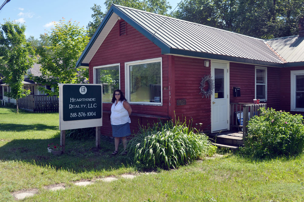 Jodi Downs, broker and owner of Hearthside Realty LLC poses at its new location at 1876 state Route 73 in Keene Valley. Hearthside specializes in real estate and vacation rentals and is open Monday through Saturday from 10 a.m. to 3 p.m. or by appointment. (Enterprise photo — Lindsay Munn)