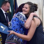 - Madison Mousaw hugs her cosmetology instructor Darcey Burman during the BOCES graduation Monday in the North Country Community College gym in Saranac Lake. (Enterprise photo — Kevin Shea)