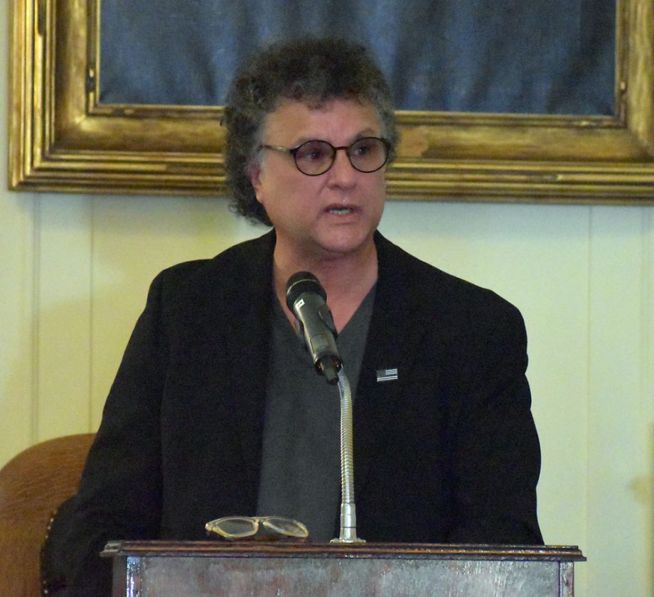 Essex County Coroner Frank Whitelaw speaks at a public hearing in the county Board of Supervisors chambers in Elizabethtown Monday on proposed coroner regulations. (Enterprise photo — Elizabeth Izzo)