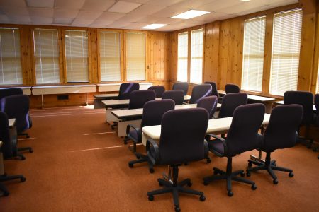 The inside of the Scholfield Memorial Workshop has been modernized and is set up for use by the property’s recent owner, the American Management Association. (Enterprise photo — Griffin Kelly)