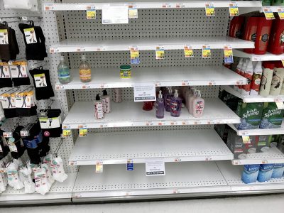 Lake Placid’s Price Chopper was sold out of hand sanitizer on Sunday due to high demand. The store imposed a limit on the purchase of toilet paper to two per customer for packs of four rolls or more, and four per customer for liquid hand soap.