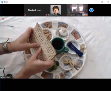 A woman watching told the group that she was sad she couldn’t be with her family this year, but grateful to have the opportunity to participate virtually. The day prior, the rabbi had also hosted a virtual Seder for members of the congregation. People watched from as far away as Buenos Aires, Argentina.