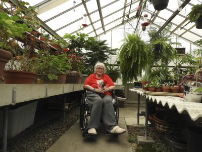 - Cecelia Meyer, a resident at Elderwood of Uihlein at Lake Placid, socially distances amid a sea of greenery in the elder care center’s greenhouse. (Photo provided)