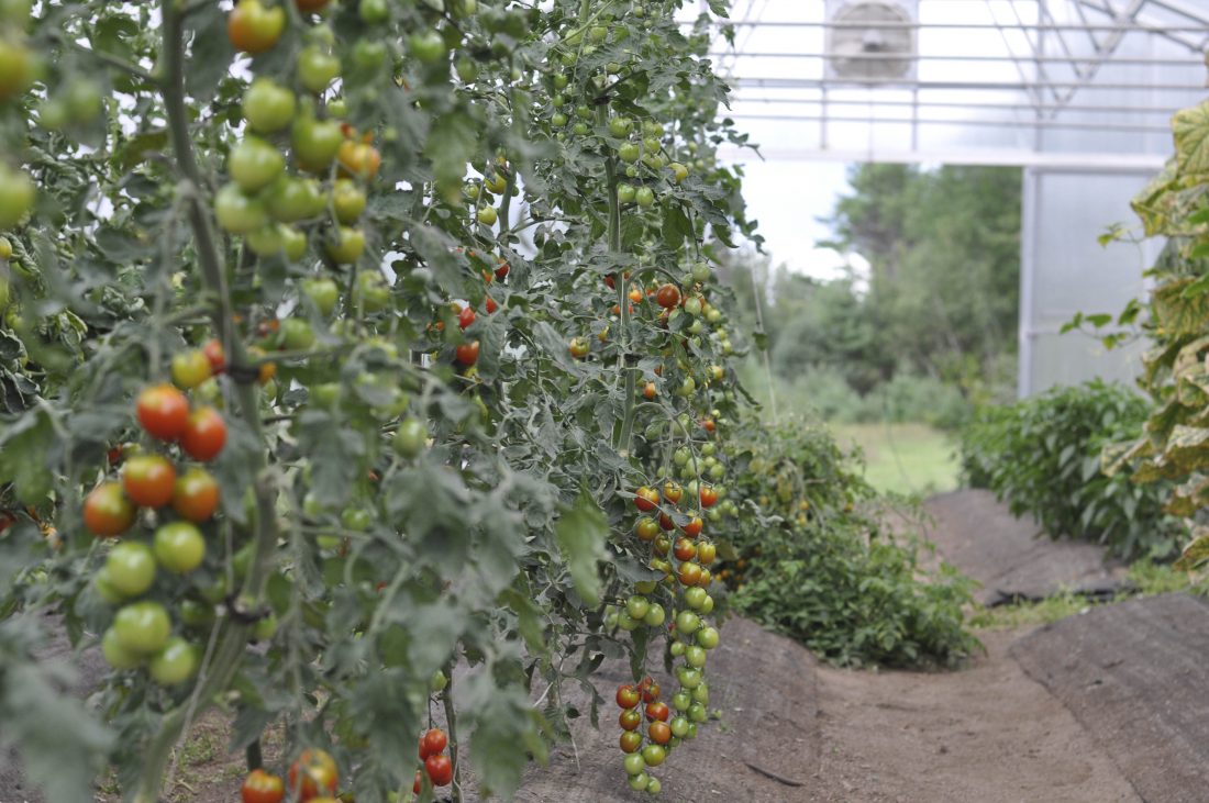 Cherry tomatoes on the vine at Kate Mountain Farm’s greenhouse. (Enterprise photo — Amy Scattergood)