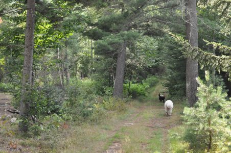 The farm is a hodgepodge of vegetables, wild blackberry bushes, wooly pigs, bounding farm dogs, old wooden buildings, chickens and turkeys, and museum equipment, including an old wood splitter once housed in Paul Smith’s Hotel and an ancient skeet shooter. Where a cornfield and pumpkin patch now flourishes, pigs were lounging four months before.