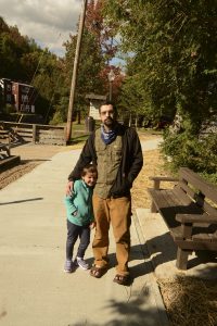 - Brandon Lane and his daughter Vivian enjoy a Friday afternoon stroll along this recently completed section of the River Walk near the Dorsey Street Parking lot in Saranac Lake. (Enterprise photo — Lou Reuter)